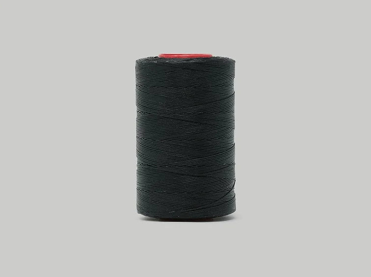This is asynthetic waxed braided polyester thread from Julius Koch. While it’s not a natural product, I use it because of the durability and longevity. Part of sustainability is making something that will last. Natural alternatives do not resist abrasion or wear like this does. As a company they take measures towards sustainability and use ethical manufacturing practices.